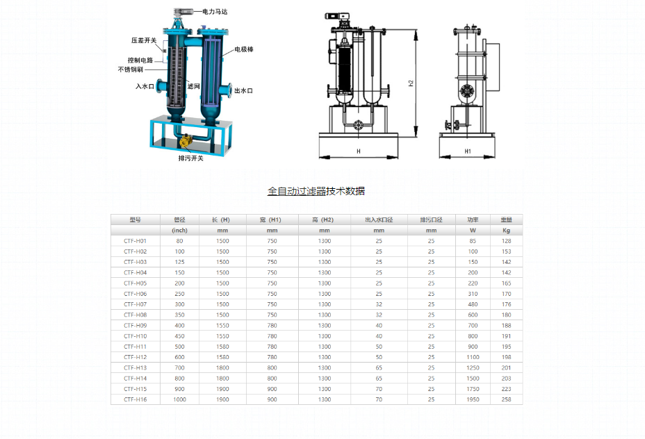 輸入電源:380V,50Hz 適用水溫:95℃ 工作電壓:≤800㎎/L 滅藻率:>99% 過濾精度范圍:100-3000μm 濁度達(dá)到Ⅱ級要求::(≤20㎎/L) 軍團(tuán)菌:達(dá)到國際標(biāo)準(zhǔn) 腐蝕率:達(dá)到國際標(biāo)準(zhǔn) 除垢、防垢率:>97% 控制介面:數(shù)顯、旋鈕、開關(guān) 全自動過濾器技術(shù)數(shù)據(jù)